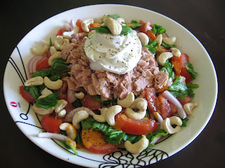 (tuna salad with buffalo mozzarella and cashew nuts)